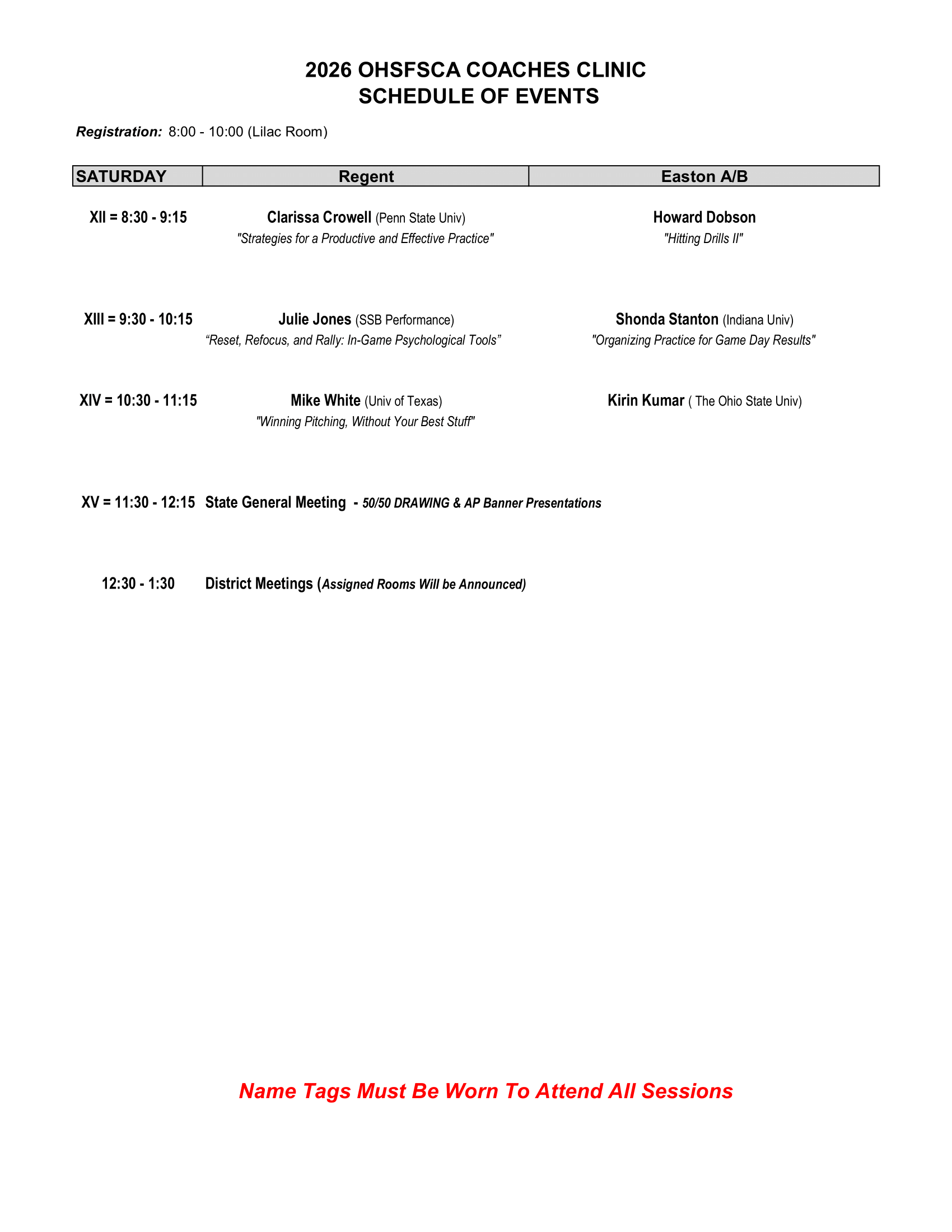 Check Out Our Schedule of Events for the 2026 Coaches Clinic