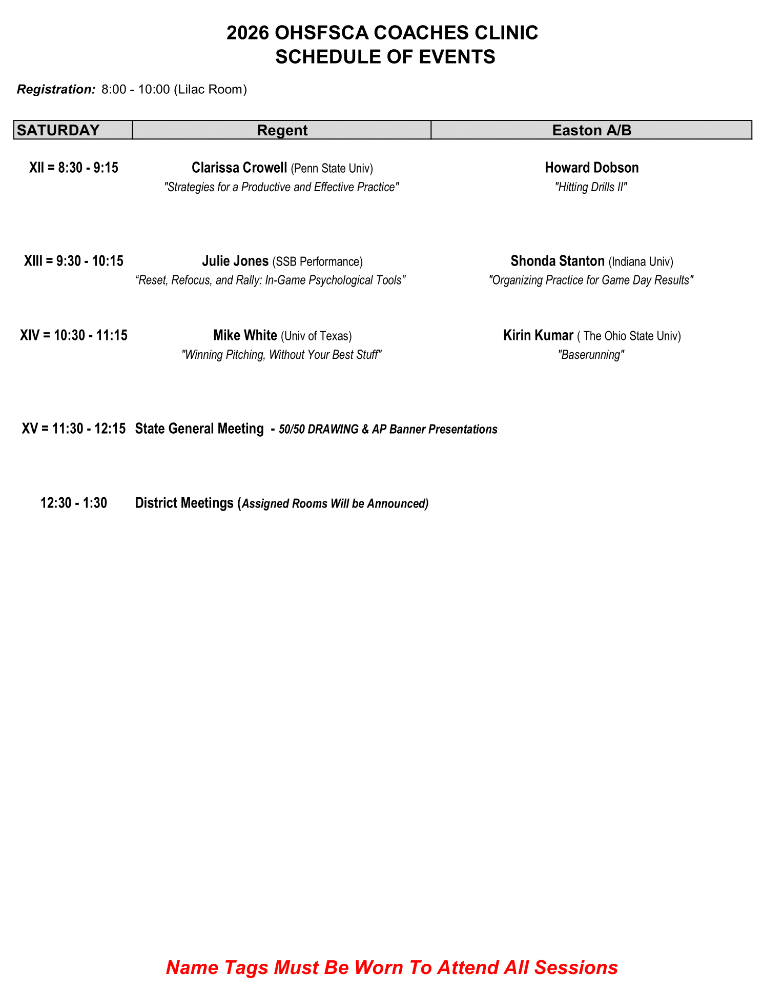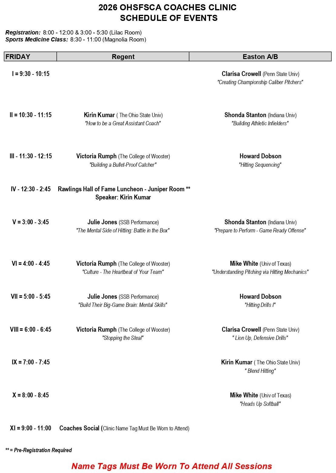 Check Out Our Schedule of Events for the 2026 Coaches Clinic